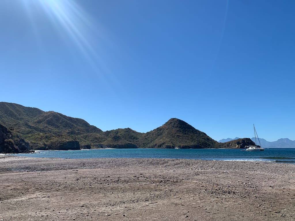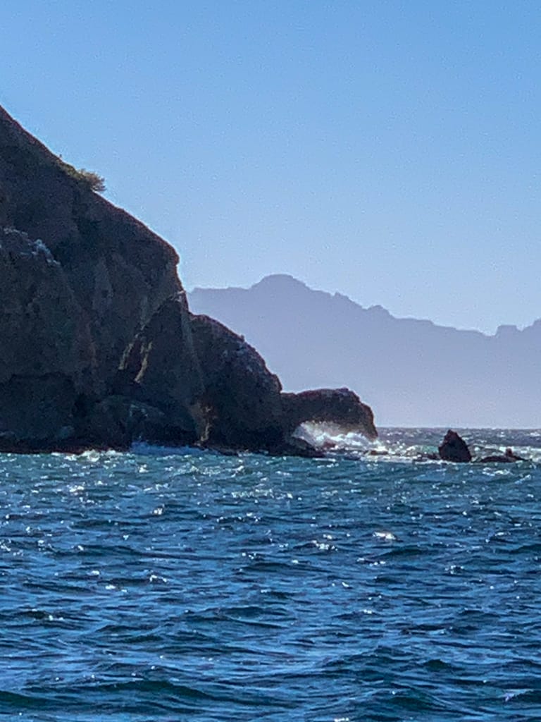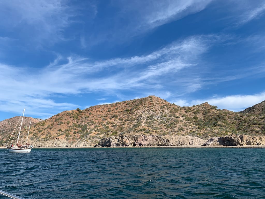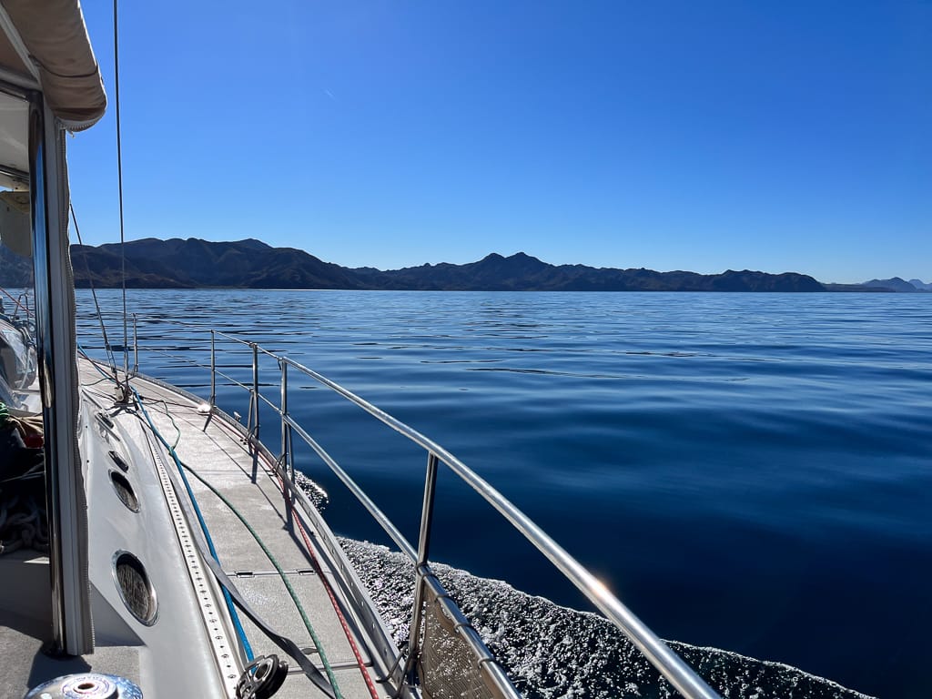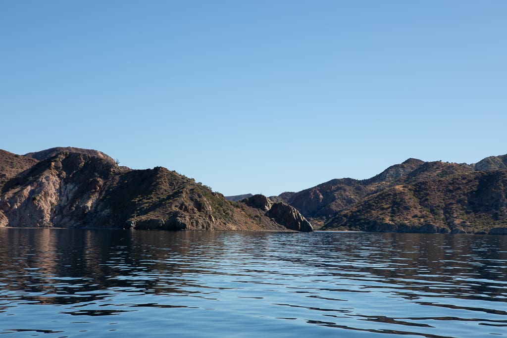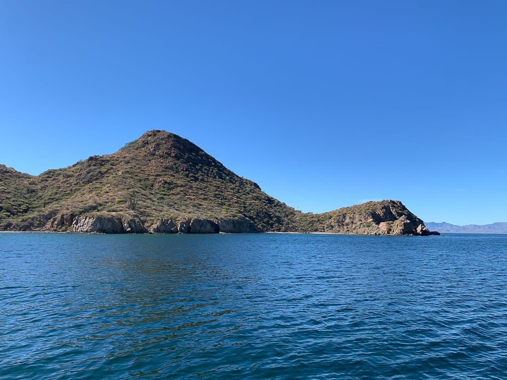 The seas were unusually calm, so flat that the sound of our motor felt unusually intrusive. We were making good progress, gliding over the glassy water with no resistance. As we neared the halfway point, with everything going smoothly, we made a spontaneous decision to push on a little further to Isla Carmen’s Bahia Ballandra, a peaceful anchorage nestled on the island’s west side offering better protection from the strong northern winds forecasted for the night ahead.