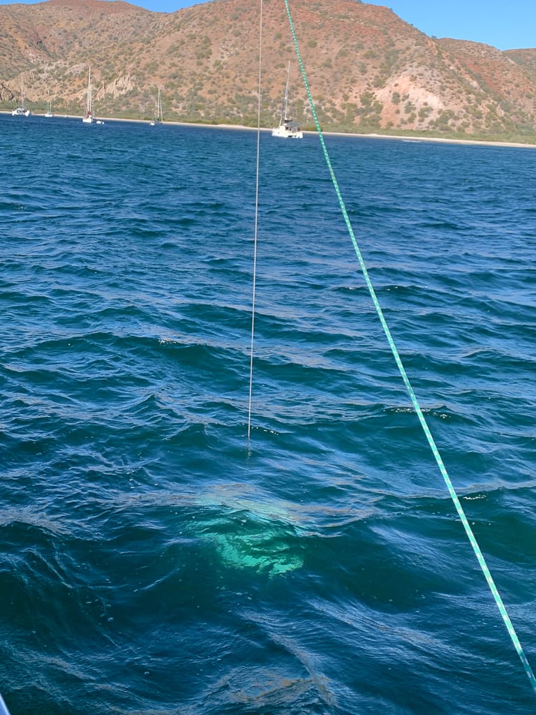 After two sleepless, wind-tossed nights, we’d had enough of Bahia Ballandra. The bay, though undeniably beautiful, had worn out its welcome. The weather forecast offered a small window of calm, and we were ready to take it. With the wind easing slightly, we weighed anchor and headed toward our next destination, Agua Verde. Our hope? A calmer anchorage and a chance to rediscover the joys of living onboard our sailboat without the constant battle with the elements.