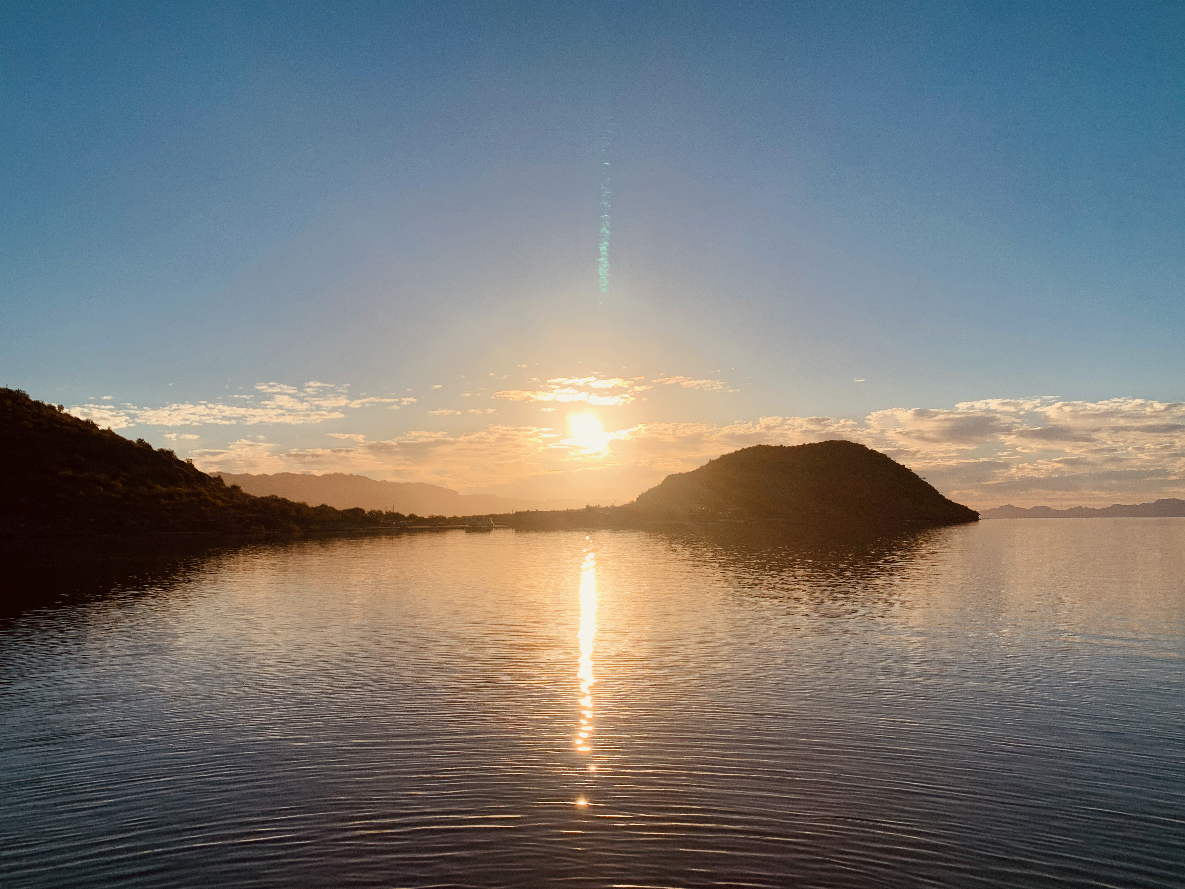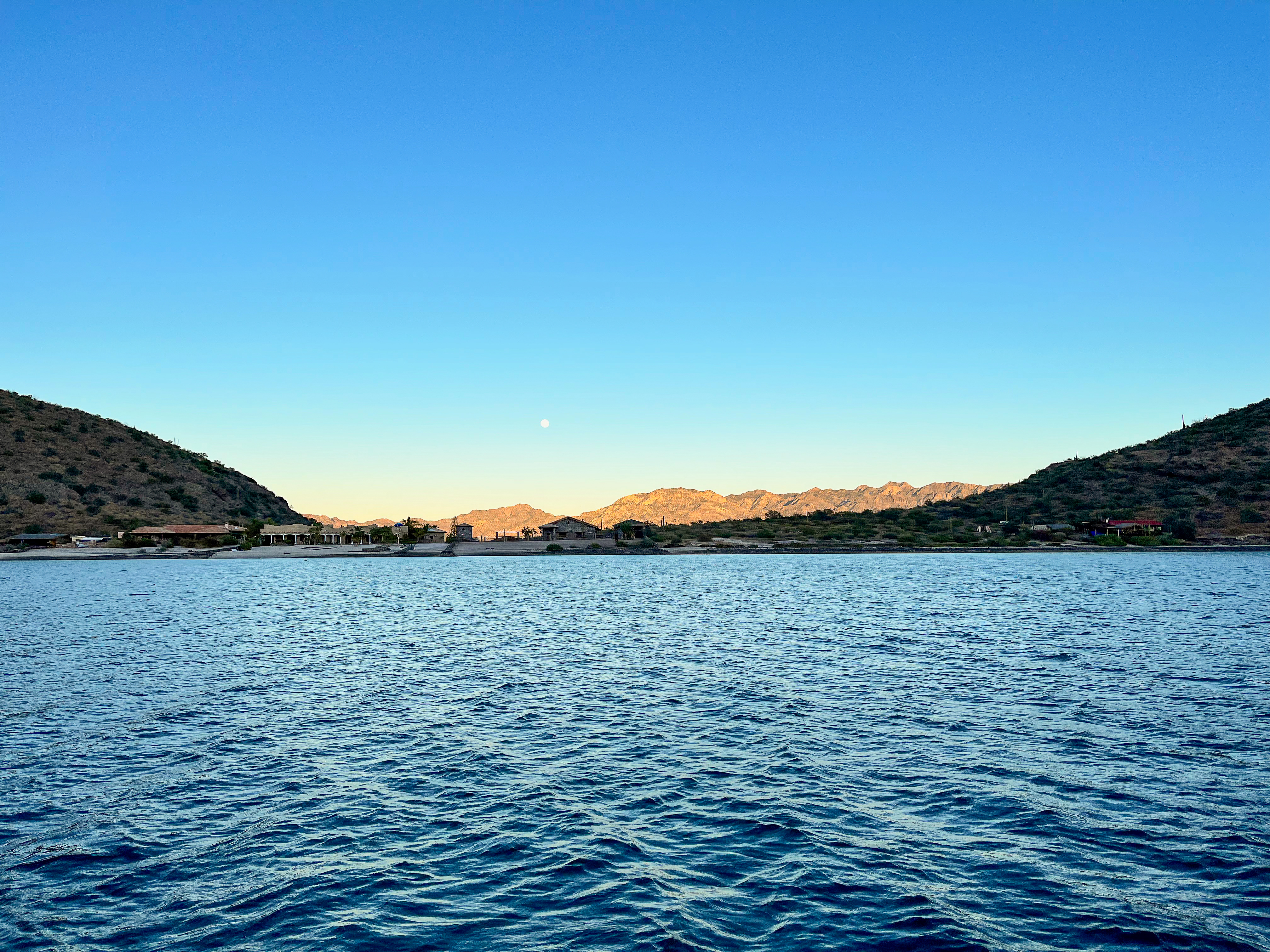 Mornings at anchor in Santispac are nothing short of magical. At dawn, the sky blazes with hues of magenta, creating a surreal backdrop for the vast pods of dolphins that frequent the bay. These playful creatures circled our anchorage, leaping joyfully from the water, their silhouettes set against the vibrant colors of the sunrise. Our boat, anchored a bit farther behind others closer to the north shore, afforded us an unobstructed view of Bahia Concepcion. The positioning gave us the illusion of being entirely alone in this vast, beautiful expanse—a rare and precious gift.