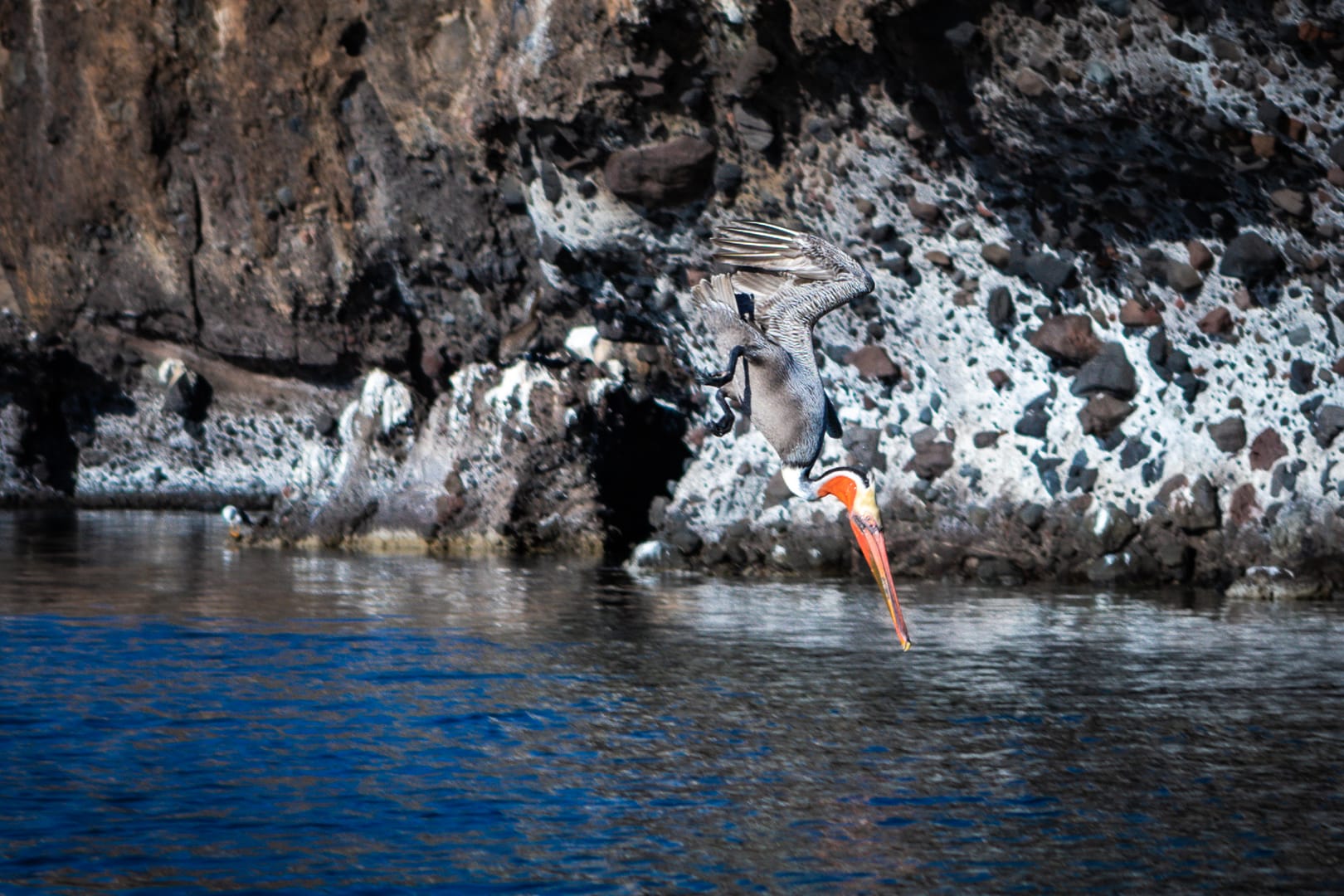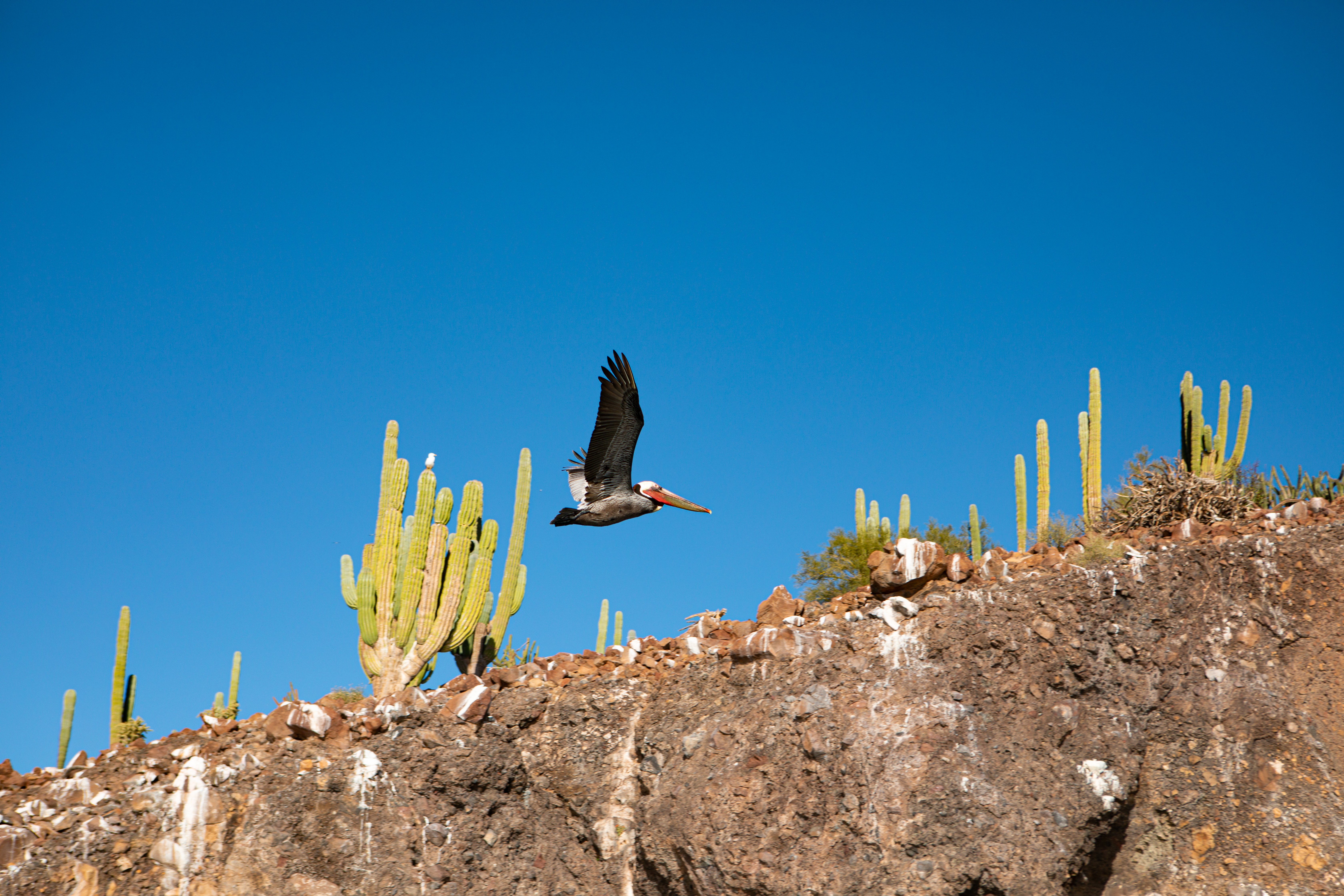 Our exploration of the area didn’t stop at the shore. One morning, we took our dinghy out to Isla Ramon, a rocky islet nearby, home to a myriad of seabirds. The island buzzed with activity, pelicans plunging into the sea in a flurry of wings and splashes, fishing for their morning meal. Despite my best efforts, capturing the grandeur of this spectacle on camera proved elusive. No photograph could convey the energy and beauty of these birds in their natural habitat, nor the awe it inspired.