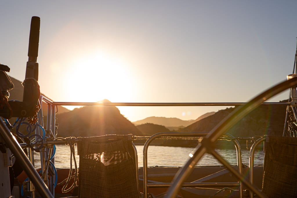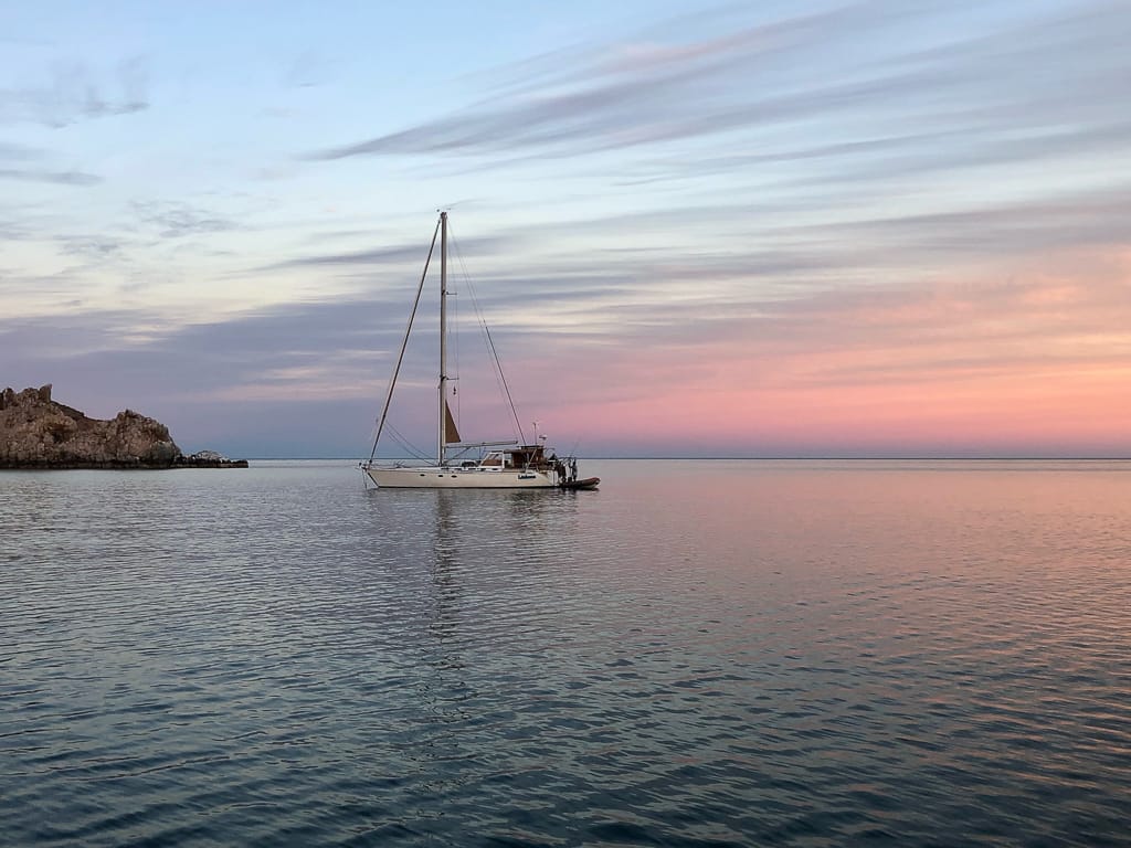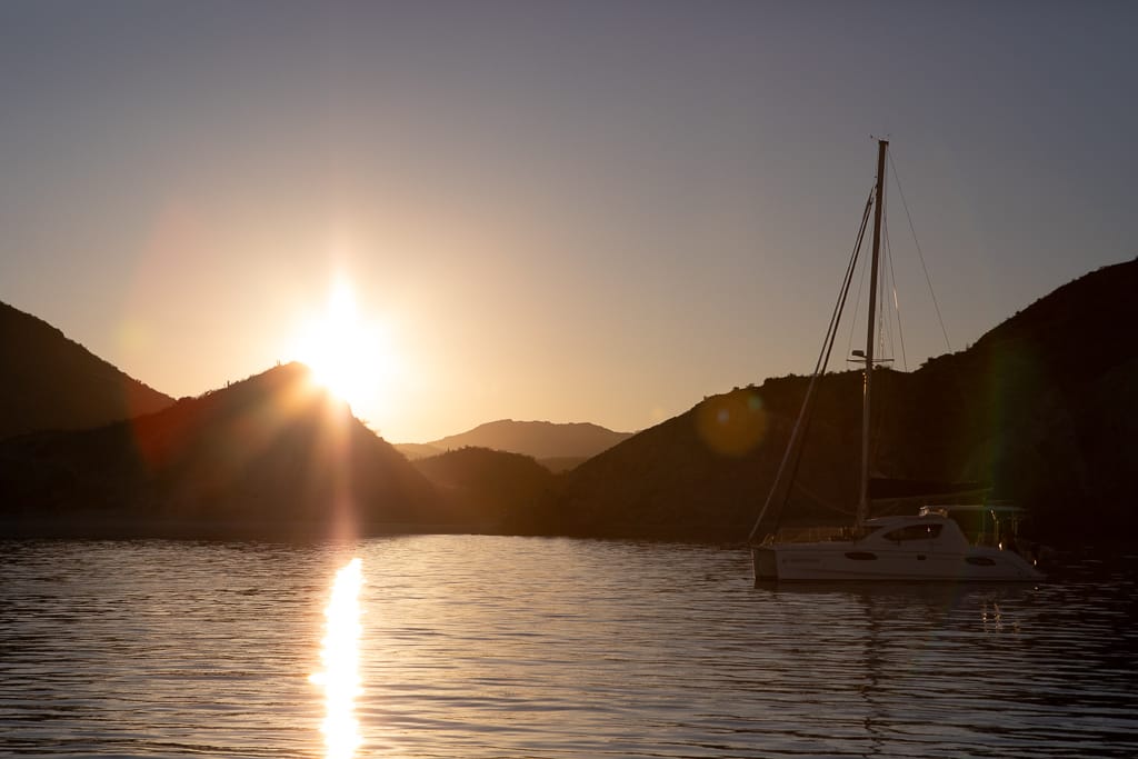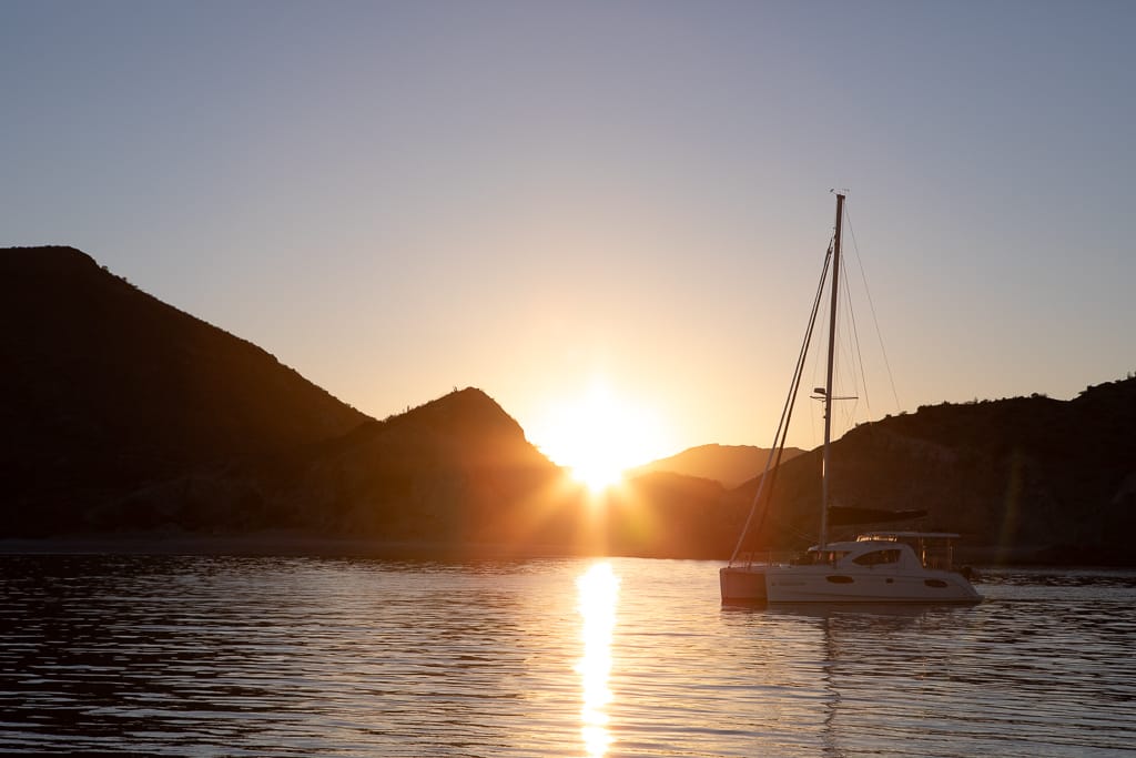 There’s nothing quite like arriving at a tranquil destination just before dusk. Nestled along the rugged coastline of Baja California, the tranquil bay of San Juanico offers a haven for cruising boats looking for protection from winters north winds. As we sailed into San Juanico, we anchored in the northernmost part of the bay, a spot we quickly found to be both serene and stunning. After setting anchor, we took a moment to relax in the cockpit, soaking in the beauty of our surroundings.